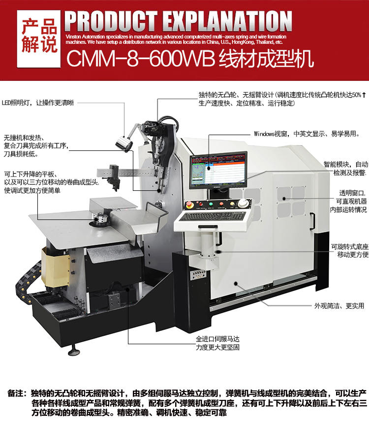永騰建議選擇永騰600wb線成型機較為合適,CMM-8-600WB 線材成型機可生產(1.8-4.0mm線經鐵線或者低碳鋼可做2.5-6.0mm),本機專業(yè)生產汽車零部件等線成型,特別適合做大桿件汽車五金線材成型產品帶平板的線材折彎成型機,既具備精密彈簧機的精度,又超越普通線成型機的速度,生產汽車零部件和廚衛(wèi)五金制品以及其他日用五金制品非常適合。具有設計直觀,調試方便,速度快的亮點。
